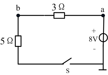计算下图中,当S闭合时,Uab=         V