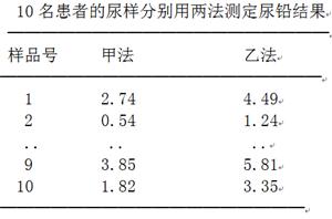 测定尿铅含量有甲乙两种方法。现用甲乙两法检测相同样品,结果如下。要比较两法测得的结果有无差别,宜用: