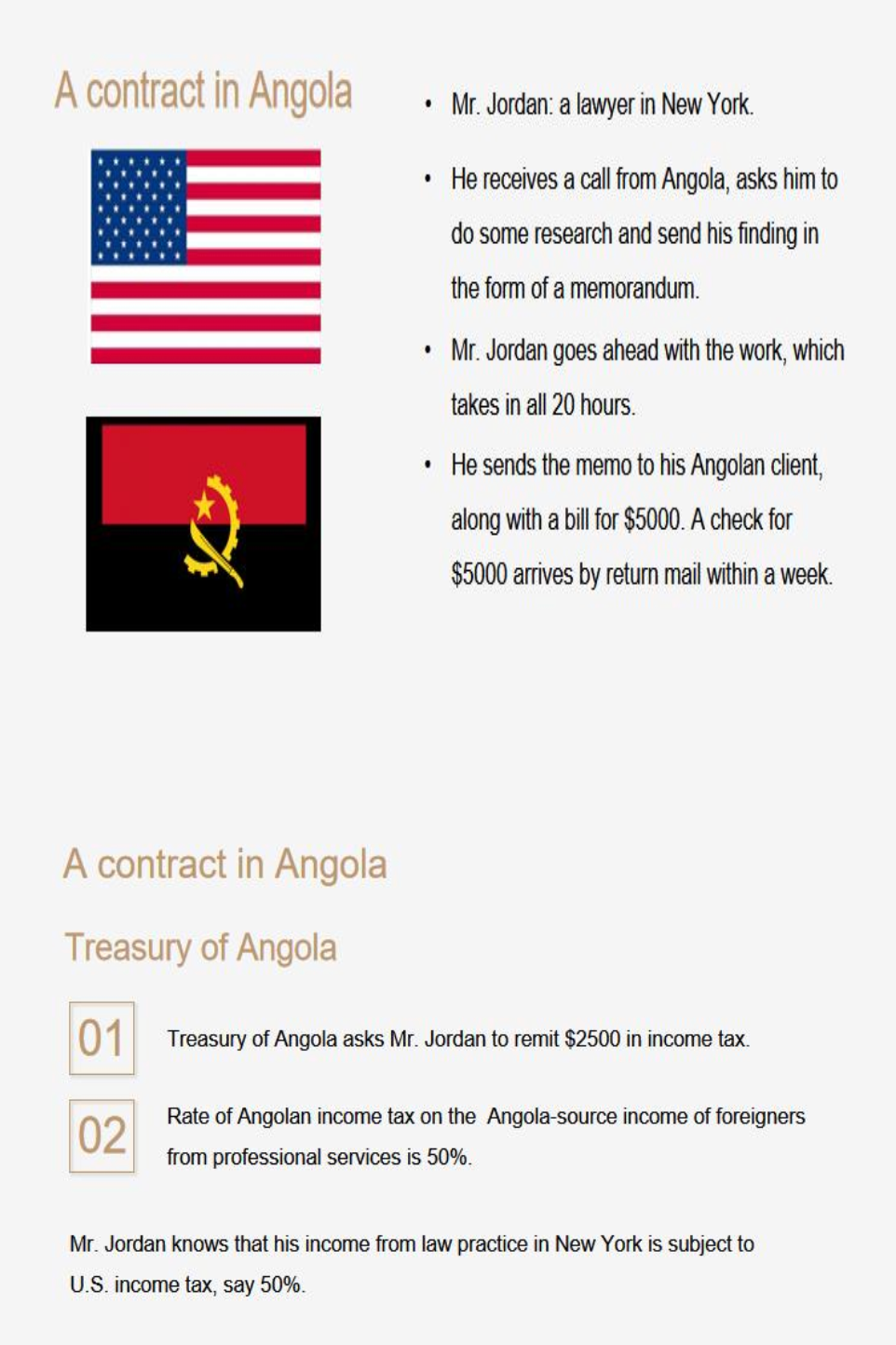 In this example, why does the Angolan Ministry of Jordan to pay income tax? ( )